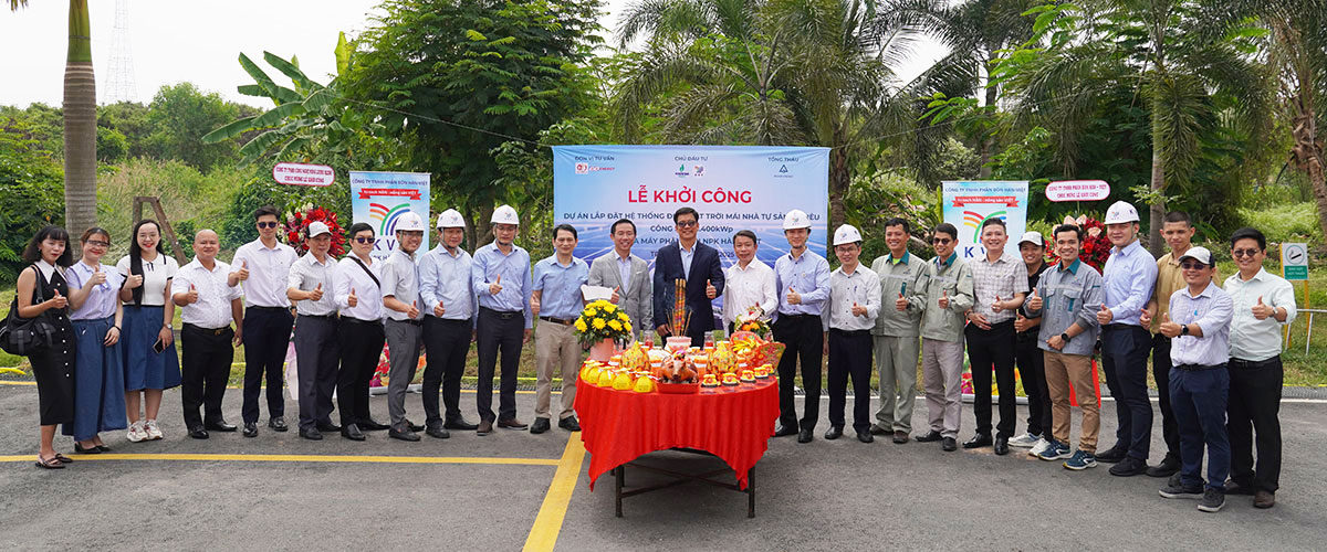 Lễ khởi công dự án điện mặt trời mái nhà 1.400 kWp tại Nhà máy Phân Bón Hàn – Việt (KVF) với sự tham dự đầy đủ của Alena Energy và Công ty TNHH Phân Bón Hàn – Việt (KVF)