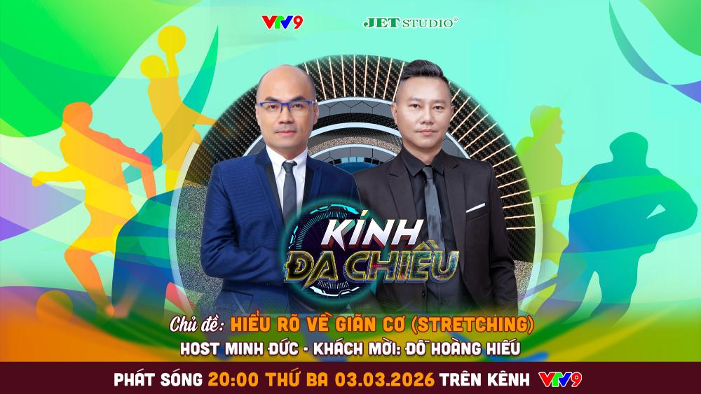 Kính Đa Chiều chủ đề Hiểu rõ về giãn cơ (Stretching) với sự tham gia của host Minh Đức và Giảng viên Đỗ Hoàng Hiếu, sẽ phát sóng lúc 20h ngày 3/3/2026 trên VTV9. Chương trình do VTV9 phối hợp Jet Studio thực hiện.