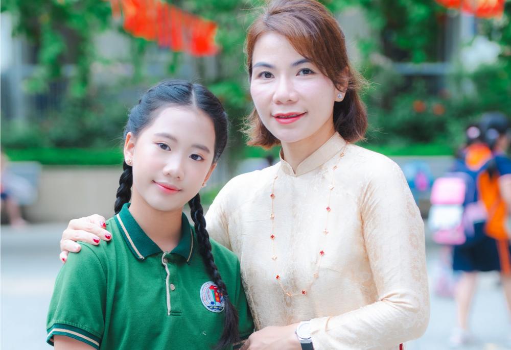 Minh Tuệ bên cô giáo Đỗ Thị Vân Anh, chủ nhiệm lớp 4C, trường Tiểu học Việt Nam – Cuba.