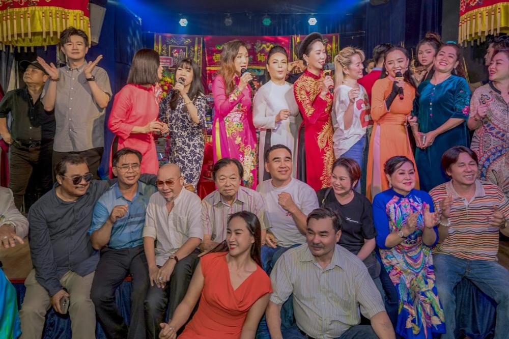 SEND Trịnh Kim Chi chụp hình kỷ niệm cùng nhiều nghệ sĩ tham dự buổi lễ cúng Tổ tại sân khấu kịch Trịnh Kim Chi