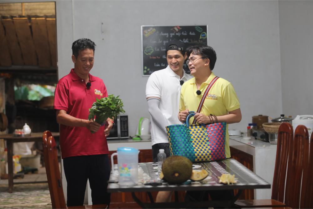 Không khí bữa tối càng rộn ràng hơn khi khách mời Lê Nam bất ngờ xuất hiện với “giao diện” đậm chất miền Tây: đeo ba lô, ôm giỏ nhựa đan trên tay. Sau màn chào hỏi, anh mang đến món đầy không khí Tết là hũ củ kiệu và tôm khô rồi “mạnh miệng” hứa sẽ giới thiệu việc làm cho cả nhóm ở chỗ bà con.
