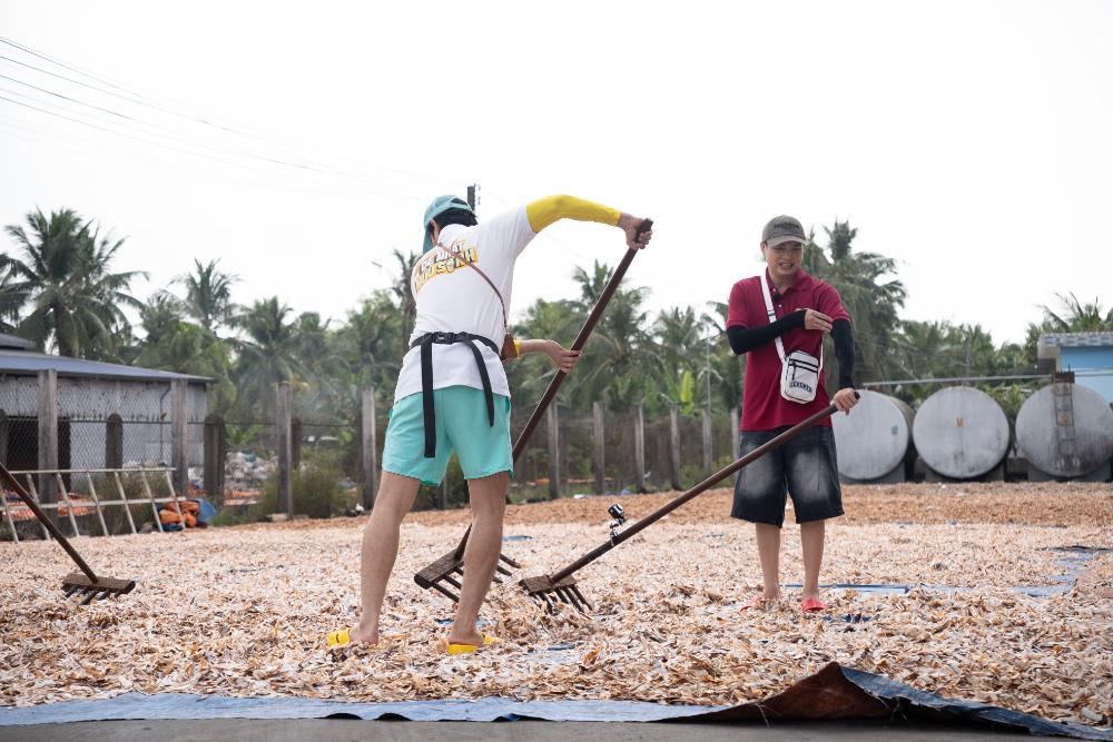 Nhưng nguồn năng lượng vui vẻ của chương trình nhanh chóng quay lại với sự góp mặt của khách mời mới. Chào đón Hữu Đằng nhập cuộc là hàng loạt trải nghiệm tại các cơ sở chế biến dừa. Từ lột vỏ dừa – công việc thu nhập cao nhưng tiềm ẩn nguy hiểm, hai diễn viên thử đổi sang gọt cơm dừa, nhìn tưởng đơn giản nhưng làm đến tê cả tay vẫn chỉ thu được 7kg dừa, tương đương 7.000 đồng tiền công. Việc tiếp theo là xới, đảo dừa phơi nắng trước khi ép với tiền công 30.000 đồng/giờ. Công việc không đòi hỏi kỹ thuật nhưng rất mệt vì phải đi lại liên tục dưới nắng gắt, dầu dừa trơn trượt, dễ té ngã. Cả hai còn phụ chất củi, một công việc nặng nhọc khác. Tuy nhiên, thần tài một lần nữa mỉm cười với Huy Khánh khi chị chủ hào phóng “lì xì” thêm 500.000 đồng mỗi người, số tiền vượt xa tiền công lao động của họ.