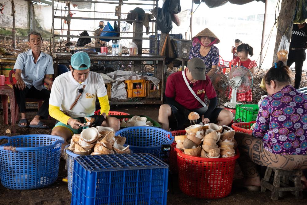 Nhưng nguồn năng lượng vui vẻ của chương trình nhanh chóng quay lại với sự góp mặt của khách mời mới. Chào đón Hữu Đằng nhập cuộc là hàng loạt trải nghiệm tại các cơ sở chế biến dừa. Từ lột vỏ dừa – công việc thu nhập cao nhưng tiềm ẩn nguy hiểm, hai diễn viên thử đổi sang gọt cơm dừa, nhìn tưởng đơn giản nhưng làm đến tê cả tay vẫn chỉ thu được 7kg dừa, tương đương 7.000 đồng tiền công. Việc tiếp theo là xới, đảo dừa phơi nắng trước khi ép với tiền công 30.000 đồng/giờ. Công việc không đòi hỏi kỹ thuật nhưng rất mệt vì phải đi lại liên tục dưới nắng gắt, dầu dừa trơn trượt, dễ té ngã. Cả hai còn phụ chất củi, một công việc nặng nhọc khác. Tuy nhiên, thần tài một lần nữa mỉm cười với Huy Khánh khi chị chủ hào phóng “lì xì” thêm 500.000 đồng mỗi người, số tiền vượt xa tiền công lao động của họ.