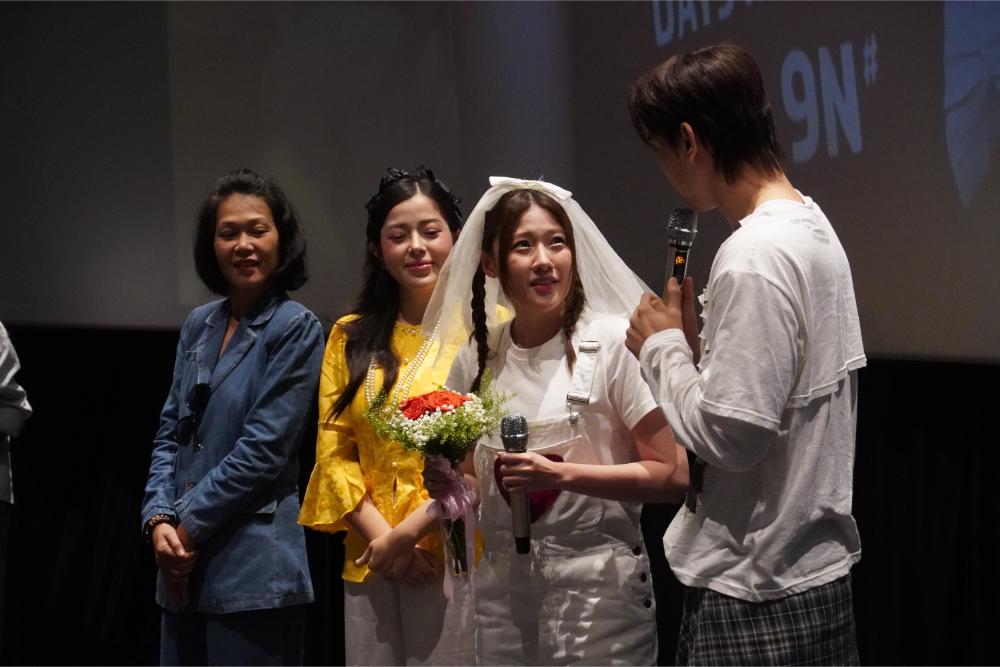 Theo đó, trong lúc giao lưu với khán giả Đồng Tháp, Thuận Nguyễn đã khiến cả rạp vỡ òa khi bất ngờ lấy ra một cặp nhẫn cưới. Anh trìu mến ngỏ lời với Uyển Ân: “Để anh đeo vào tay em nha”. Uyển Ân kinh ngạc thốt lên: “Trời ơi, một chỉ vàng”. Cô tỏ ra bối rối và quay mặt nhìn xung quanh. Khoảnh khắc lãng mạn này khiến hàng trăm khán giả Đồng Tháp cổ vũ và liên tục hô vang tên hai diễn viên.