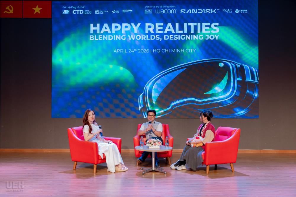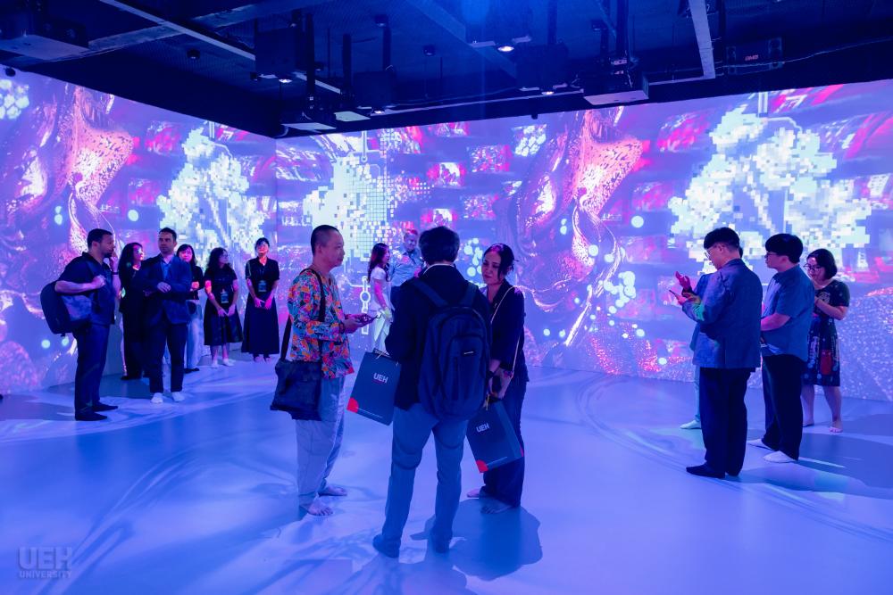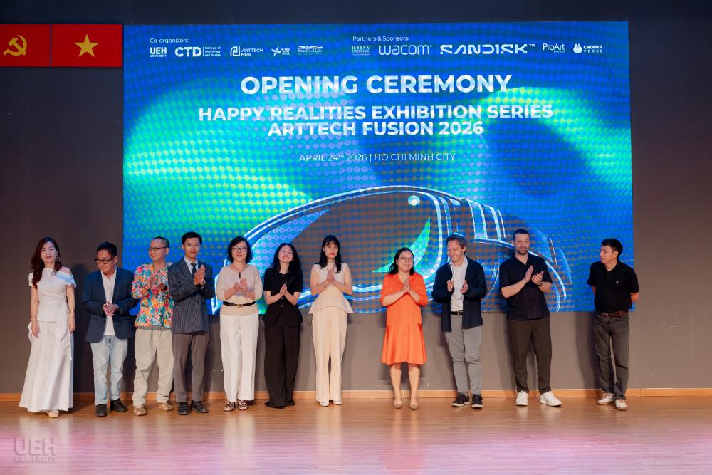 Ngày 24/4/2026, Đại học Kinh tế Thành phố Hồ Chí Minh (UEH) chính thức ra mắt không gian học tập đắm chìm (Immersive Room) tại phòng B2.110, Cơ sở B (279 Nguyễn Tri Phương, Phường Diên Hồng, TP.HCM), trong khuôn khổ triển lãm “HAPPY REALITIES: Blending Worlds, Designing Joy” -hoạt động mở đầu cho chuỗi ArtTech Fusion 2026 (ATF26).