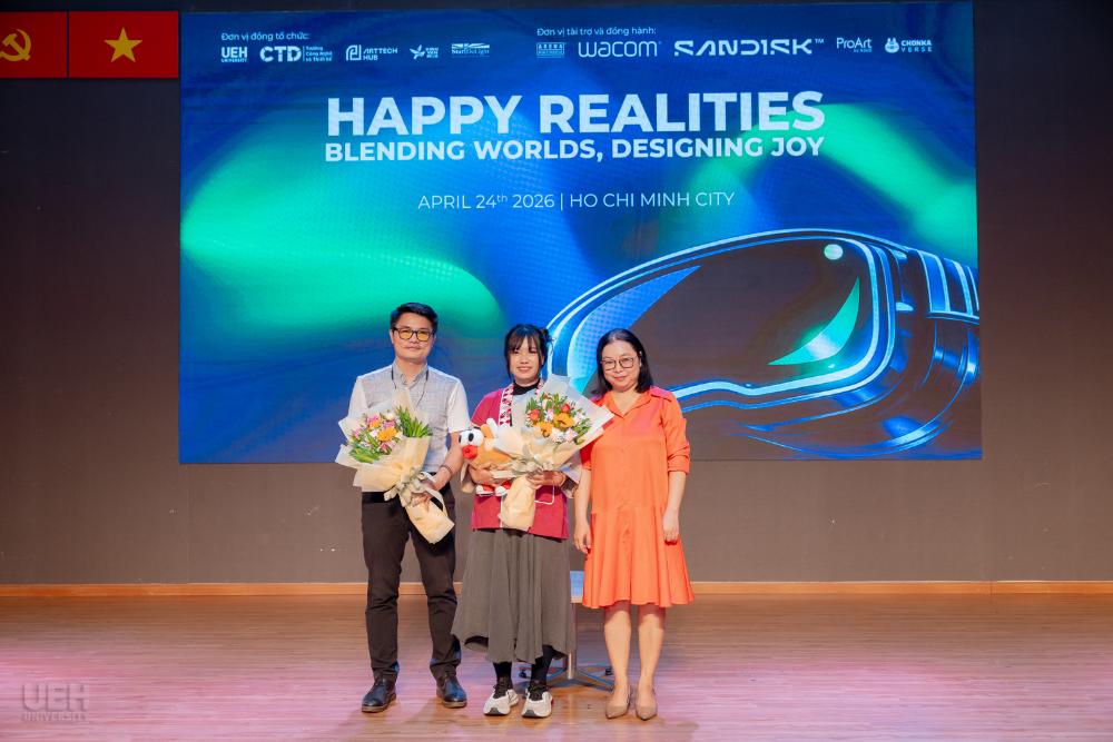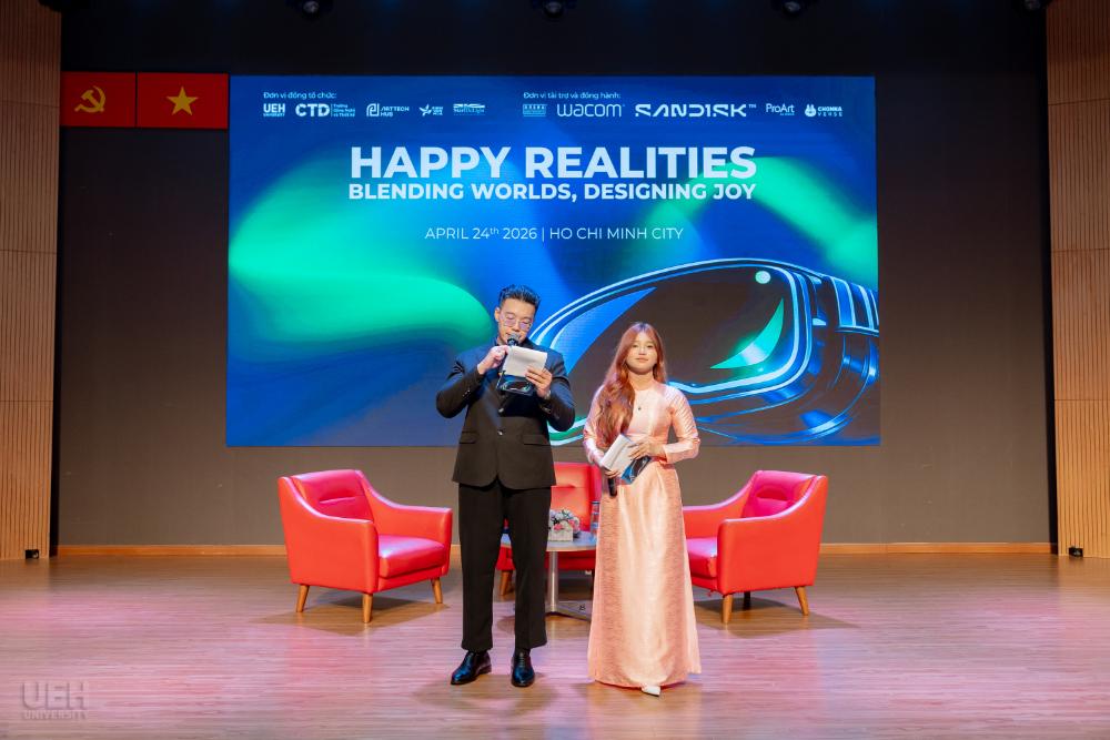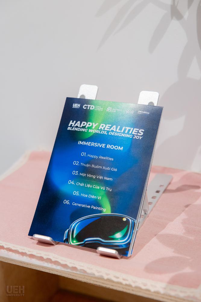TRIỂN LÃM “HAPPY REALITIES” -TRẢI NGHIỆM IMMERSIVE ROOM VÀ KHÔNG GIAN NGHỆ THUẬT CÔNG NGHỆNhằm giới thiệu Immersive Room đến cộng đồng, UEH tổ chức triển lãm “HAPPY REALITIES: Blending Worlds, Designing Joy”, kết hợp talkshow chuyên đề và trải nghiệm đa giác quan, đặt ra câu hỏi: “Hạnh phúc là điều chúng ta bắt gặp, hay là điều chúng ta kiến tạo?” Talkshow quy tụ hai diễn giả đại diện cho hai cách tiếp cận bổ trợ: ● Đạo diễn/ThS. Dương Văn Huy -mang đến góc nhìn về việc ghi lại những khoảnh khắc chân thực của đời sống ● Chị Nguyễn Ngọc Đan Quyên -Founder Chonkaverse, đại diện cho hướng tiếp cận kiến tạo cảm xúc thông qua sáng tạo và công nghệ Bên cạnh đó, triển lãm mang đến các trải nghiệm nổi bật: ● Không gian AR/VR tương tác ● Triển lãm nhiếp ảnh “Sương” giàu cảm xúc thị giác ● Trình diễn 3D Mapping & Video Art kết hợp thiết kế sinh viên và nghệ thuật đương đại Sự kiện không chỉ là hoạt động giới thiệu công nghệ mà còn mở ra cách tiếp cận mới trong việc cảm nhận, thiết kế và tái định nghĩa “thực tại” trong thời đại số, đồng thời minh họa rõ nét cách Immersive Room được ứng dụng trong học tập và sáng tạo. |