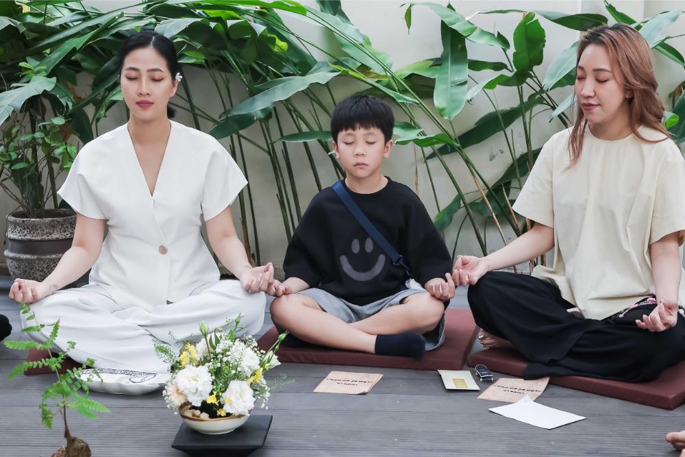 Tại buổi trải nghiệm, MC Liêu Hà Trinh cho biết các nhóc tỳ nhà Sao Việt đã được hướng dẫn thiền từ những động tác đơn giản nhất, như chỉ cách ngồi yên ngay ngắn, tập trung lắng nghe âm thanh, cảm nhận màu sắc… Ngoài ra, để phù hợp với lứa tuổi của các con, buổi hành thiền còn tập cho trẻ biết cách thiền quýt, thiền ca và dâng trà mời mẹ. Đây đều là những hoạt động khá mới với trẻ nhỏ nhưng các bé lại tỏ ra thích thú tham gia. Chẳng hạn, 2 con gái Tuệ Lâm – Tuệ Anh của Phạm Quỳnh Anh hay bé Henry – Lana nhà Thu Thủy ban đầu còn bỡ ngỡ khi tiếp xúc với các bài tập với thiền, nhưng sau đó đã bắt nhịp rất nhanh. Hay bé Sol (con gái Thiên An) hay bé Max (con trai Á hậu Hoàng Oanh) cũng đã thoải mái bày tỏ tình cảm bằng những cái ôm hay dâng trà mời mẹ sau khi trải nghiệm lớp học.