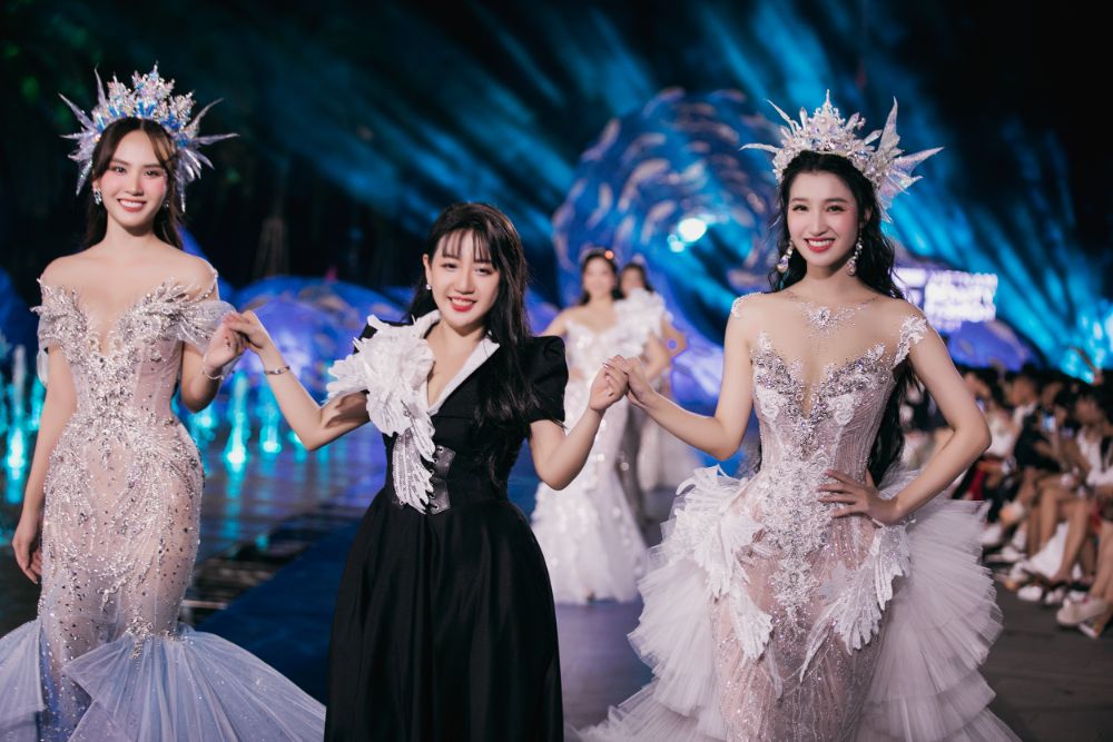 Vedette Hoa hậu Thế giới Việt Nam – Huỳnh Nguyễn Mai Phương xuất hiện khiến ai nấy đều phải xuýt xoa. Nàng hậu như hòa mình vào không gian xinh đẹp lộng gió Merryland Quy Nhơn và là điểm nhấn khó quên của BST “Song of mermaid”. Không chỉ toát nên vẻ đẹp lấp lánh xa hoa, Mai Phương còn tự tin catwalk trên sàn runway, hứa hẹn về một “chiến binh nghìn máu” chinh chiến tại đấu trường quốc tế Miss World năm nay.