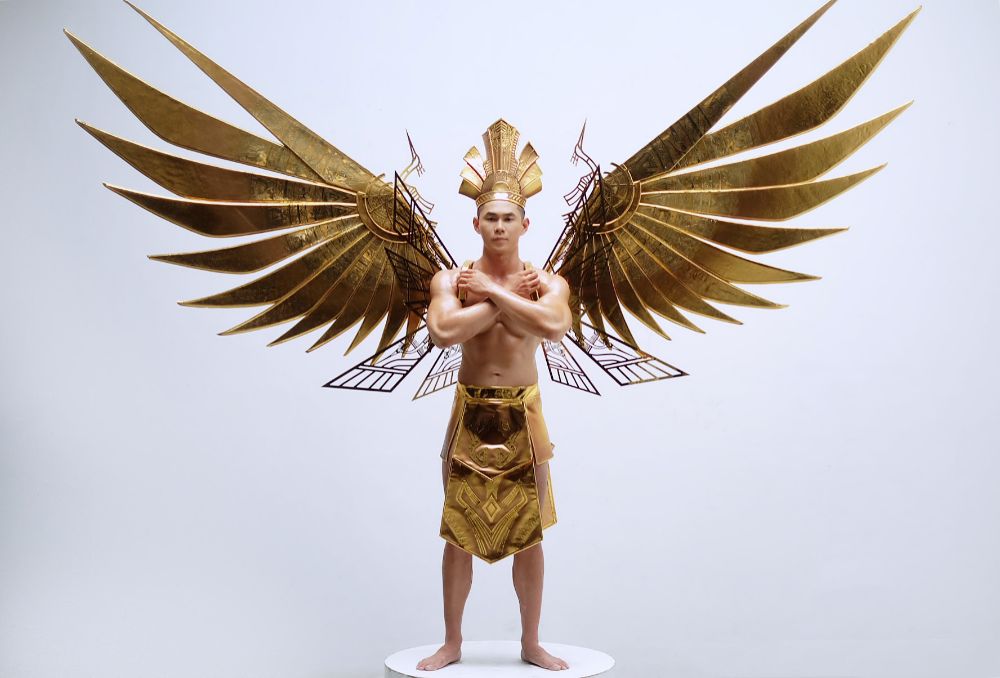 Đến với cuộc thi Mister Asian International 2023, Vĩ Tân chọn trang phục dân tộc “Tiếng vọng Đông Sơn” của nhà thiết kế Lê Quốc Anh Cường. Tân cho biết, Trống Đồng Đông Sơn là biểu tượng của niềm tin, khát vọng và sự tự hào của người Việt cổ nói riêng và của cả Việt Nam nói chung. Hình ảnh chim Lạc được tái hiện một cách mạnh mẽ tựa như chiến binh vươn đến những điều tốt đẹp như chính ý nghĩa mà ông cha ta gửi gắm qua từng hoạ tiết trên mặt trống đồng. Vì vậy, anh hi vọng bộ trang phục này sẽ giúp anh thêm phần tự tin tại cuộc thi.