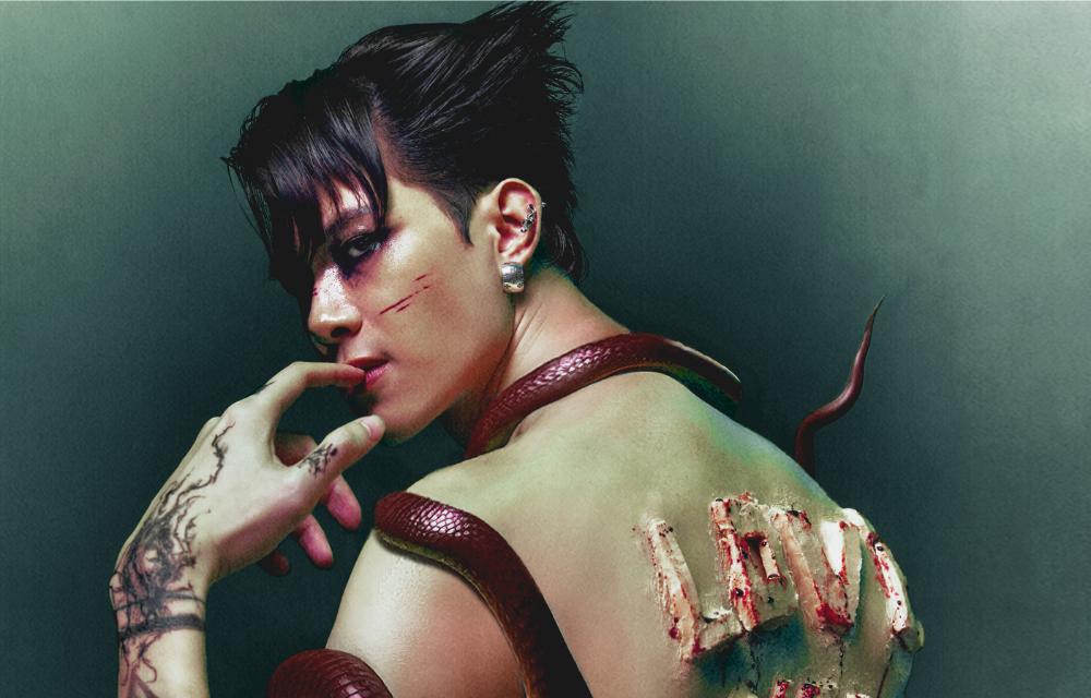 Trong bộ ảnh mới, Anh Tú Atus không hóa thân vào một nhân vật cụ thể mà chọn phong cách ma mị với 5 concept khác nhau. Tại đây anh phá cách với mẫu áo đầy dao găm, đôi cánh đen như Maleficent đến tạo điểm nhấn “khắc chữ” trên lưng. Bên cạnh sự hỗ trợ về phục trang, thần thái từ đôi mắt toát ra của nam diễn viên đủ khiến người xem phải thuyết phục.