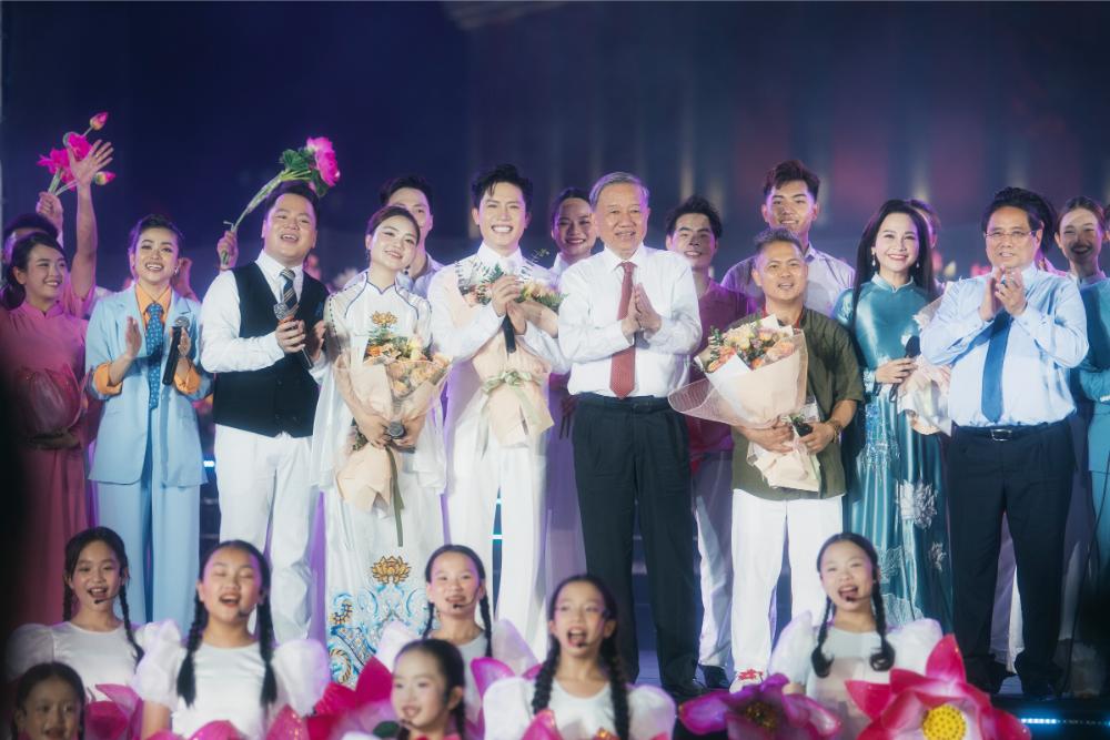 Niềm vinh dự và xúc động của nam ca sĩ càng được nhân lên gấp bội khi sau đêm diễn, anh đã được bắt tay và nhận lời khen từ Tổng Bí thư Tô Lâm và Thủ tướng Chính phủ Phạm Minh Chính. Những lời động viên, ghi nhận từ các lãnh đạo Đảng và Nhà nước như một phần thưởng tinh thần vô giá, là sự ghi nhận cho nỗ lực, tài năng và tâm huyết của người nghệ sĩ trẻ với âm nhạc cách mạng.