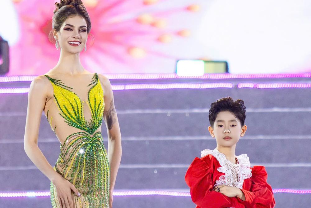Dù còn rất nhỏ tuổi, Nam vương Nhí Thế giới vẫn làm chủ sân khấu một cách tự nhiên, tạo nên sự kết hợp hài hòa khi sánh bước cùng Miss Charm 2025 Anna Blanco Flores- biểu tượng của vẻ đẹp hiện đại, trí tuệ và tinh thần hội nhập toàn cầu. Màn xuất hiện chung mang đến hình ảnh giao thoa đầy cảm hứng giữa thế hệ nhan sắc nhí Việt Nam và biểu tượng sắc đẹp quốc tế.