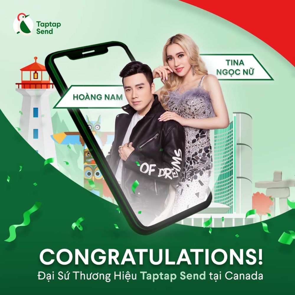 Đầu tháng 4 năm 2022 cặp đôi ca sĩ Nguyễn Hoàng Nam và Tina Ngọc Nữ vinh dự được đồng hành cùng TAPTAP SEND – Ứng dụng chuyển tiền quốc tế với vai trò “Đại sứ thương hiệu TAPTAP SEND ” tại CANADA.