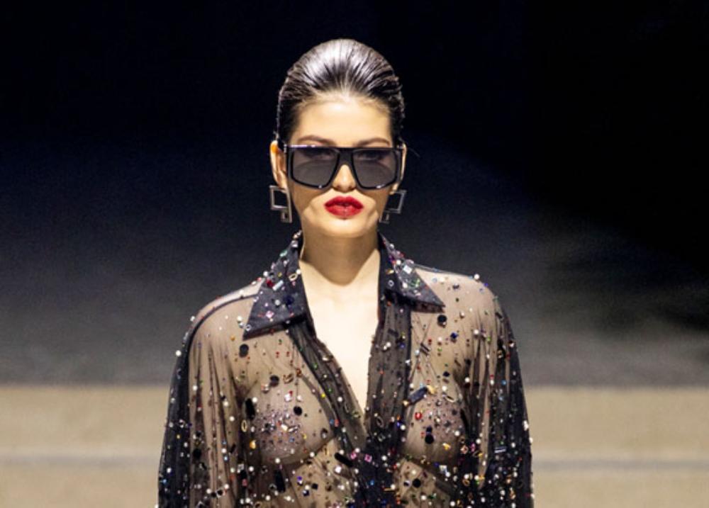 Show diễn mở màn với những gam màu sự hòa hợp giữa thời trang cao cấp lẫn tính ứng dụng như đen, trắng hay beige,… trong một loạt các thiết kế mang hơi hướng hiện đại, làm nổi bật bản lĩnh mạnh mẽ, không khoan nhượng của một quý cô thế kỷ 21. Trong đó, phom dáng “chiếm sóng” nhiều nhất chính là các mẫu áo croptop cùng mini dress, tưởng chừng như thoải mái nhưng lại táo bạo bất ngờ với đường cắt xẻ khu chân ngực. Hình ảnh những chiếc áo quần xuyên thấu mỏng tang, short ngắn kết hoa 3D hay chiếc áo quá khổ và những chiếc quần dài cạp trễ mang đậm tinh thần quyết liệt, gợi cảm tột cùng nhưng vẫn phảng phất nét trang nhã trong mỗi DNA thương hiệu.