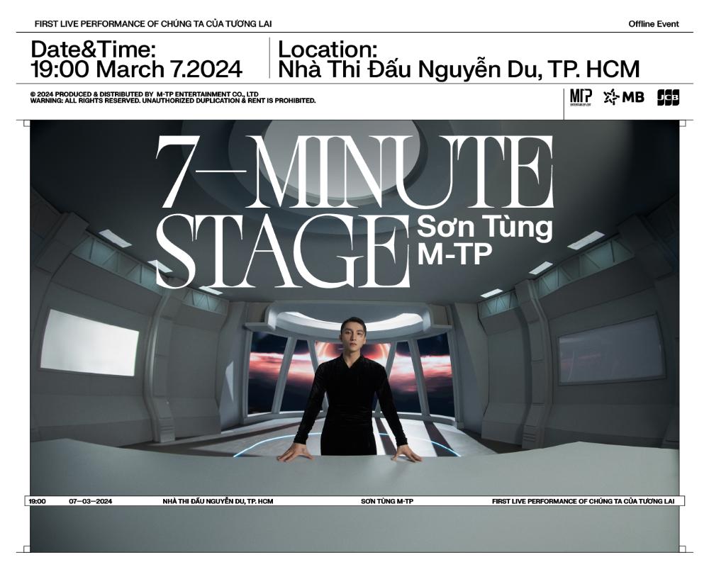 Tiếp nối chuỗi quảng bá cho lần trở lại này, vào tối 24/02/2024, Sơn Tùng M-TP chính thức công bố show diễn “7-MINUTE STAGE”. Đây là sân khấu đặc biệt, là sân khấu live đầu tiên của bài hát mới nhất Chúng Ta Của Tương Lai mà nam nghệ sĩ muốn dành tặng điều tuyệt vời này cho những khán giả yêu thương của mình. Đúng như tên gọi, sân khấu với thời lượng 7 phút vô cùng độc đáo, “7-MINUTE STAGE” là sự tự do sáng tạo của nam nghệ sĩ trên hành trình nghệ thuật độc đáo của chính mình. Ngoài ra, đến với show diễn này, nam nghệ sĩ cũng mong muốn tạo ra một trải nghiệm âm nhạc đặc biệt chưa từng có đến cho khán giả, đến với những người yêu thương tuyệt vời nhất của Sơn Tùng M-TP.
