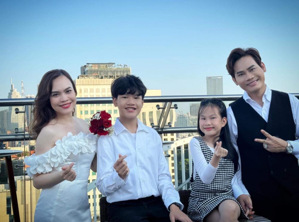Bộ ảnh cưới mang gam màu tươi sáng như trắng, đỏ. Bối cảnh lãng mạn được chụp tại một khách sạn nổi tiếng ở TPHCM. Đặc biệt, trong bộ ảnh, còn có sự góp mặt của con trai Hồng Long (14 tuổi) và con gái Quỳnh Phương (10 tuổi) của cặp đôi.