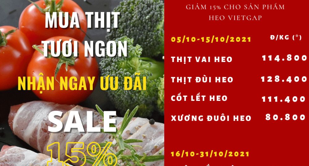 Theo đó, công ty VISSAN giảm giá lên đến 15% các mặt hàng Thịt Heo VietGAP như: Ba rọi heo rút sườn, Sườn non, Cốt lết heo, Nạc dăm heo… Ngoài ra còn ưu đãi 40% đối với mặt hàng đầu lòng heo như tim heo, lưỡi heo,…