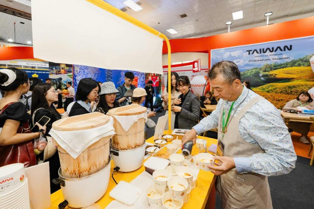 Tại gian hàng của Đài Loan, du khách còn có thể thưởng thức món tào phớ đặc biệt thơm ngon, trải nghiệm đan túi đựng cốc, làm túi thơm bằng trà Bao chủng Văn Sơn, quế hoa, trà Đông Phương Mỹ Nhân, hoa bưởi… Ngày khai mạc, KOL du lịch Tô Đi Đâu (có 61 nghìn người theo dõi) đã đến gian hàng Đài Loan để chia sẻ kinh nghiệm du lịch Đài Loan và dẫn dắt du khách khám phá ẩm thực Đài Loan.