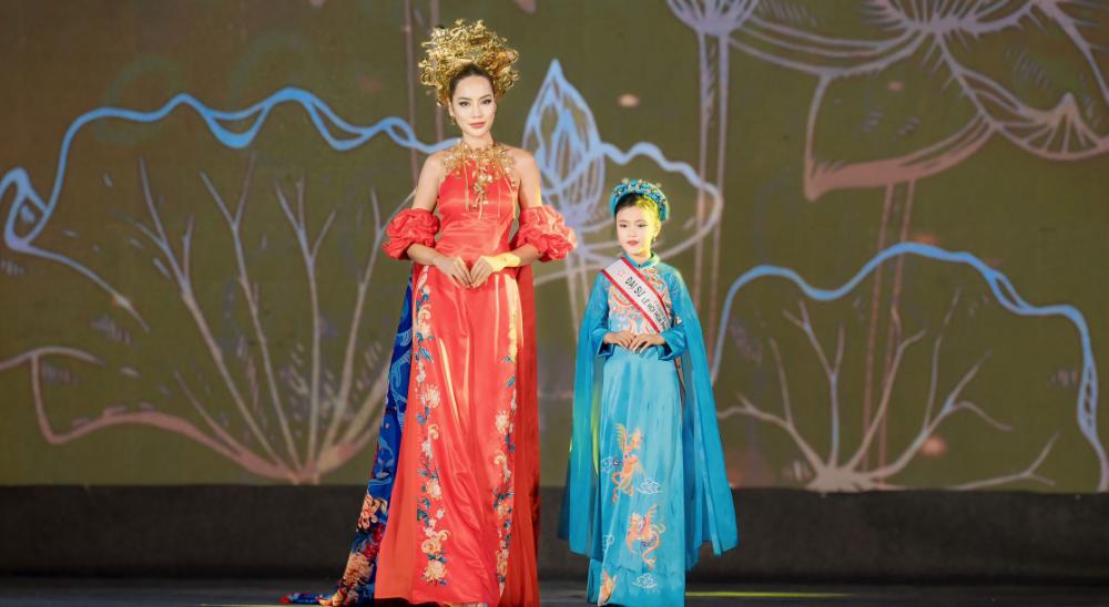 Đại sứ, mẫu Nhí Minh Châu biểu diễn cùng Hoa hậu Lê Hoàng Phương trên sàn diễn Tôn vinh bản sắc Việt
