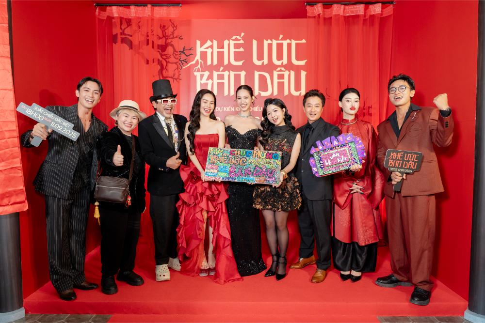 Đặc biệt, ngay trong sự kiện công chiếu, ekip Khế Ước Bán Dâu đã mang đến cho khán giả những trải nghiệm đặc biệt ngay tại thảm đỏ. Điểm nhấn của buổi lễ là màn trình diễn trống nghệ thuật công phu, tái hiện không khí nghi lễ kịch tính trong phim. Sự xuất hiện của dàn trống và nhân vật Thế Định (Lãnh Thanh) đã khiến khán phòng bùng nổ.