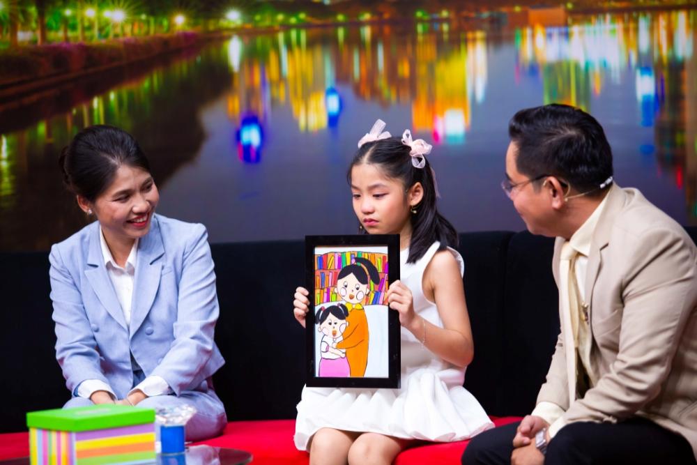 Một trong những khoảnh khắc xúc động nhất chương trình là khi Tuệ Lâm mang theo một bức tranh do chính em vẽ. Đó là hình ảnh hai mẹ con cùng nhau đi nhà sách – một khoảnh khắc giản dị mà em luôn mong ước được lặp lại. Không chỉ là một bức tranh trẻ thơ, đó còn là thông điệp chân thành mà bé gửi đến mẹ: mong được gần gũi hơn, được quan tâm hơn và được mẹ dịu dàng hơn. Suốt chương trình, điều Tuệ Lâm lặp đi lặp lại nhiều nhất là: “Con muốn mẹ hiền hơn với con”.