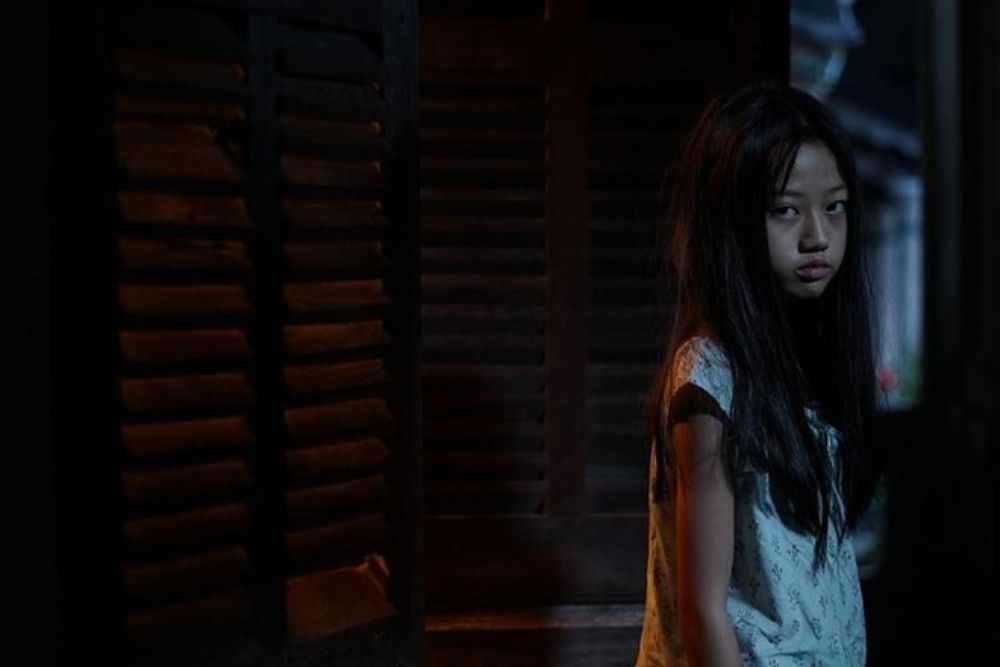 Ánh sáng vàng le lói qua các kẽ hở của khung cửa chớp khiến người xem sợ hãi.