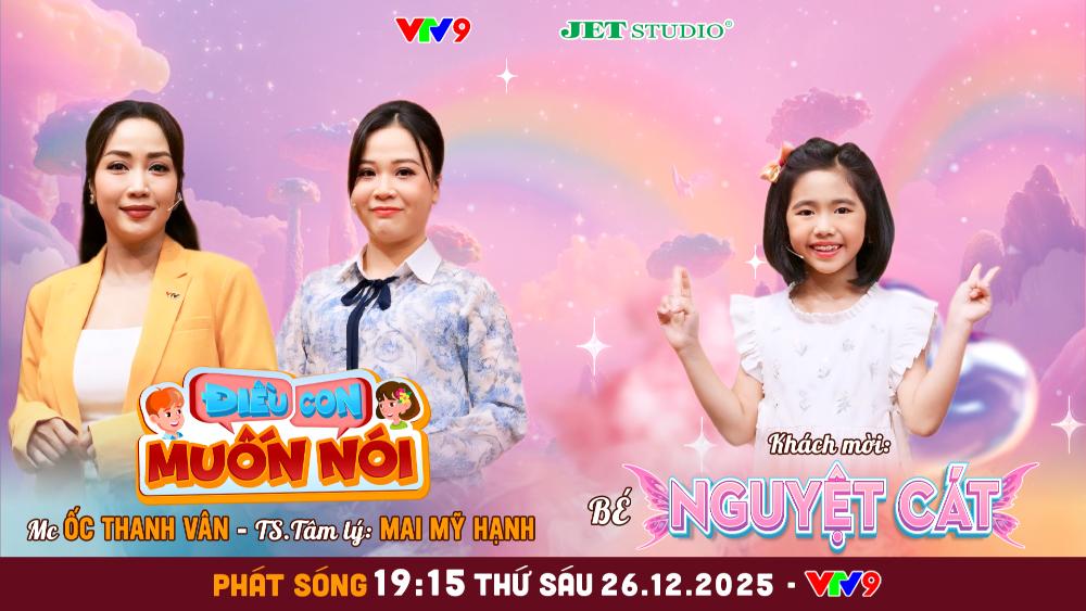 Điều Con Muốn Nói tập 25 với những tâm sự của bé Nguyệt Cát sẽ được phát sóng lúc 19h15 thứ Sáu 26/12/2025 trên VTV9. Chương trình Điều Con Muốn Nói do VTV9 phối hợp Jet Studio thực hiện.