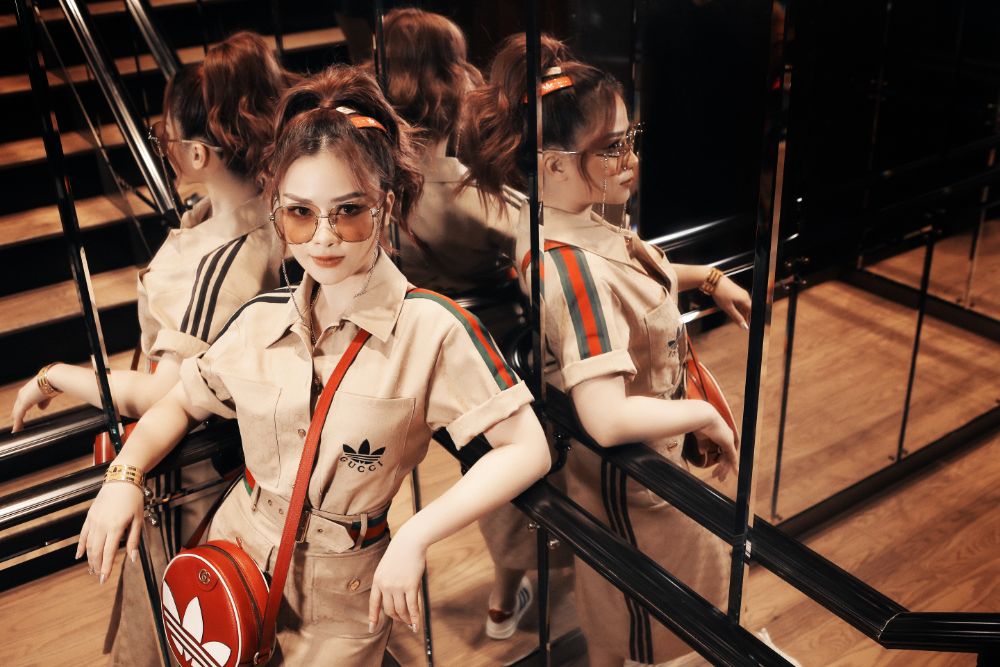 Lựa chọn BST mới nhất của Gucci kết hợp cùng Adidas để thực hiện bộ hình, giọng ca “Xe Anh Đến Đâu Anh Theo Tới Đó” khiến khán giả khó rời mắt bởi thần thái tràn đầy năng lượng tích cực trong từng shot hình. Nhìn loạt ảnh này, khó ai nghĩ nay Dương Hoàng Yến đã bước qua tuổi 30.