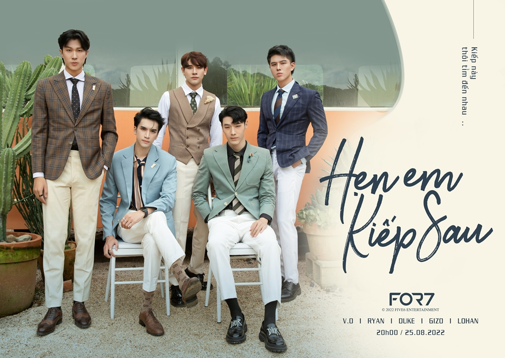 Trước những mong mỏi của người hâm mộ, FOR7 tiếp tục hé lộ dự án mới mang tên “Hẹn Em Kiếp Sau” cùng bộ ảnh được thực hiện tại Đà Lạt. 5 chàng trai của nhóm mang đến hình ảnh ấn tượng khi diện vest màu sắc, vừa trẻ trung nhưng cũng rất sang trọng, lịch lãm. Ngoại hình thư sinh, điển trai của FOR7 nhanh chóng chiếm được cảm tình của người hâm mộ.