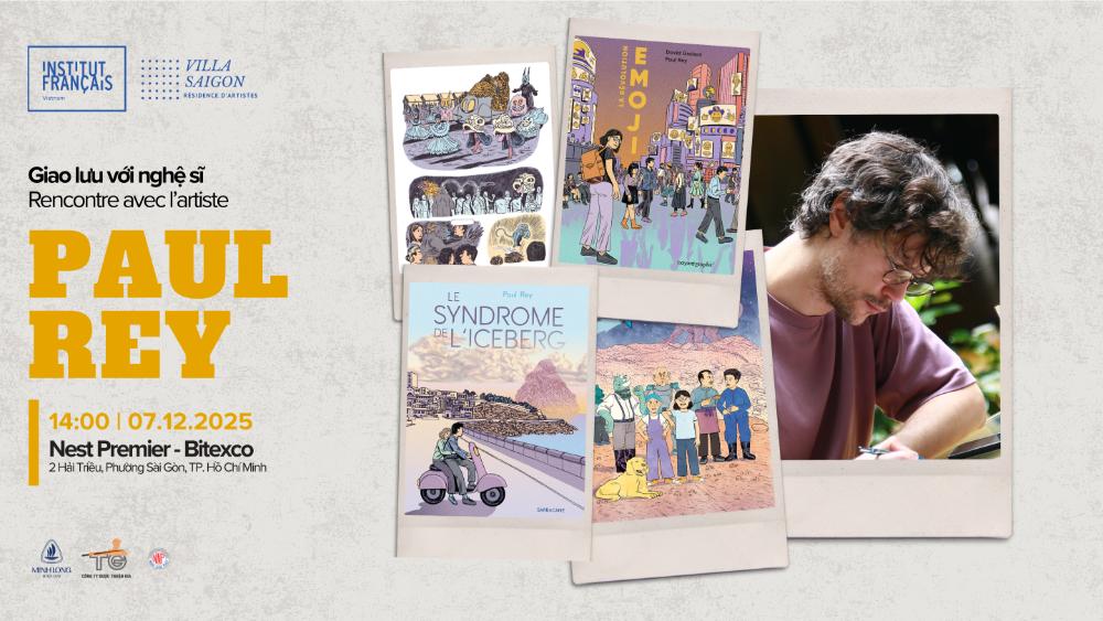 Trong khuôn khổ chương trình nghệ sĩ lưu trú Villa Saigon, Viện Pháp tại Việt Nam hân hạnh giới thiệu buổi trò chuyện và thảo luận với nghệ sĩ minh họa truyện tranh người Pháp Paul Rey, xoay quanh dự án truyện tranh “Futurs submergés” (tạm dịch : Tương lai bị nhấn chìm) và quá trình hoạt động nghệ thuật của anh trong ngành truyện tranh.