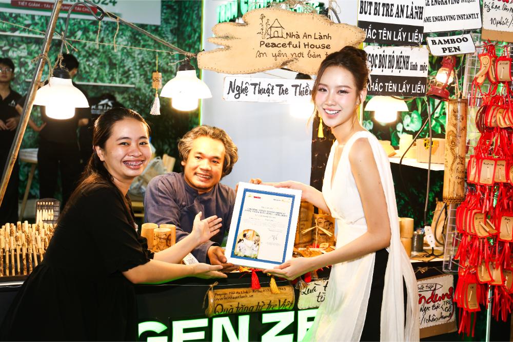 Gian hàng “Trạm chạm xanh” còn có thêm sự tham gia của một vị khách mời đặc biệt nữa là Á vương Đinh Ta Bi – đại sứ quen thuộc của Gen Zero trong hành trình thanh niên vì phát triển bền vững.