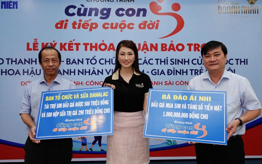 Sau phần ký biên bản thỏa thuận bảo trợ, nhà báo Nguyễn Ngọc Toàn đã thay mặt chương trình tiếp nhận tổng số tiền 2,7 tỉ đồng từ Ban tổ chức cuộc thi HHDNVN và các người đẹp tham gia cuộc thi trao tặng. Trong đó, chị Đặng Bảo Trâm và chị Đặng Thu Vân, đại diện Ban tổ chức cuộc thi HHDNVN và nhà hảo tâm sữa Danalac tặng 500 hộp sữa trị giá 290 triệu đồng; Hoa hậu Đào Ái Nhi tặng 1 tỉ đồng và số tiền tài trợ sim đấu giá 500 triệu đồng; Á hậu Đỗ Thị Vân Anh tặng 269 triệu đồng; chị Mai Thanh Nhàn tặng 559 triệu đồng; chị Đặng Hoàng Uy tặng 200 triệu đồng; chị Trương Hiền tặng 150 triệu đồng; chị Hoàng Ngọc Anh tặng 50 triệu đồng; chị Đinh Ngọc Phượng tặng 200 phần quà sâm trị giá 120 triệu đồng; chị Nguyễn Thị Quỳnh Như tặng 30 chiếc iPad trị giá 300 triệu đồng.