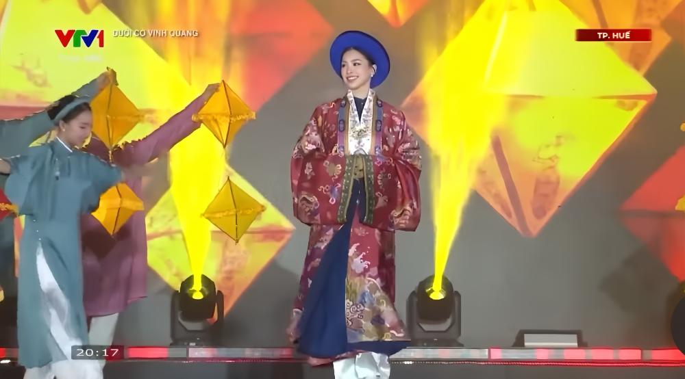 Hoa hậu Tiểu Vy trình diễn Việt phục tại Cầu truyền hình chính luận nghệ thuật “Dưới cờ Vinh Quang”