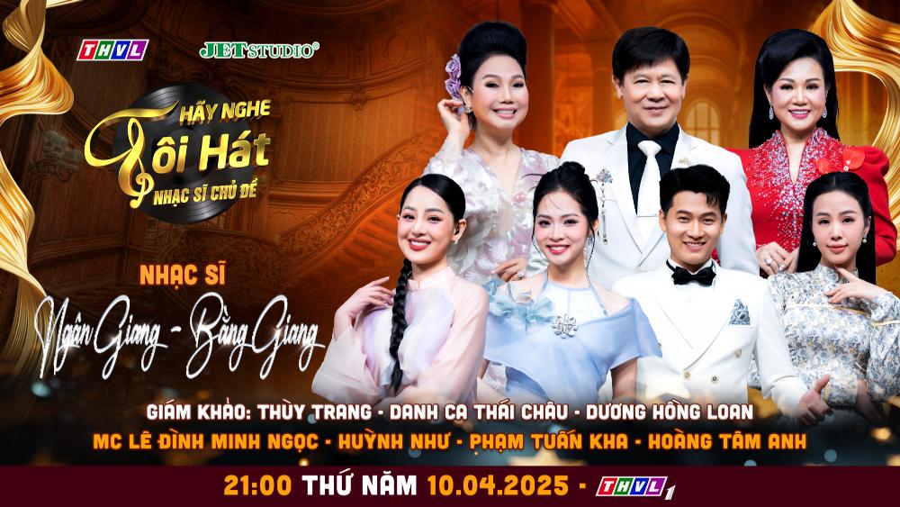 Hãy Nghe Tôi Hát tập 5 với chủ đề nhạc sĩ Ngân Giang – Bằng Giang sẽ được phát sóng vào lúc 21h Thứ Năm ngày 10/4/2025 trên kênh THVL1. Chương trình do Đài Truyền hình Vĩnh Long và Jet Studio phối hợp sản xuất.