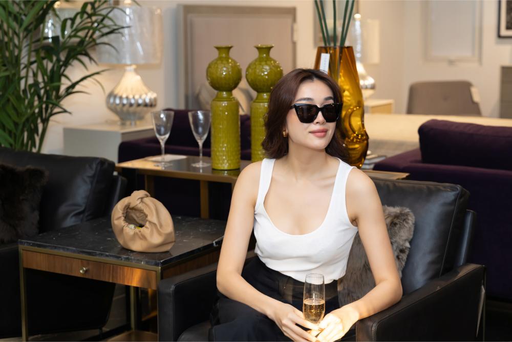 Là một trong những nhan sắc thường xuyên dành những lời hoa mỹ để khen ngợi, tham dự tiệc trà của Sonder Living Vietnam, người đẹp lựa chọn trang phục đơn giản nhưng vẫn nổi bật nhờ thần thái “beauty queen”. Nàng hậu diện một chiếc áo thun ba lỗ trắng đi cùng quần baggy lưng cao, khoe sắc vóc trẻ trung, năng động.