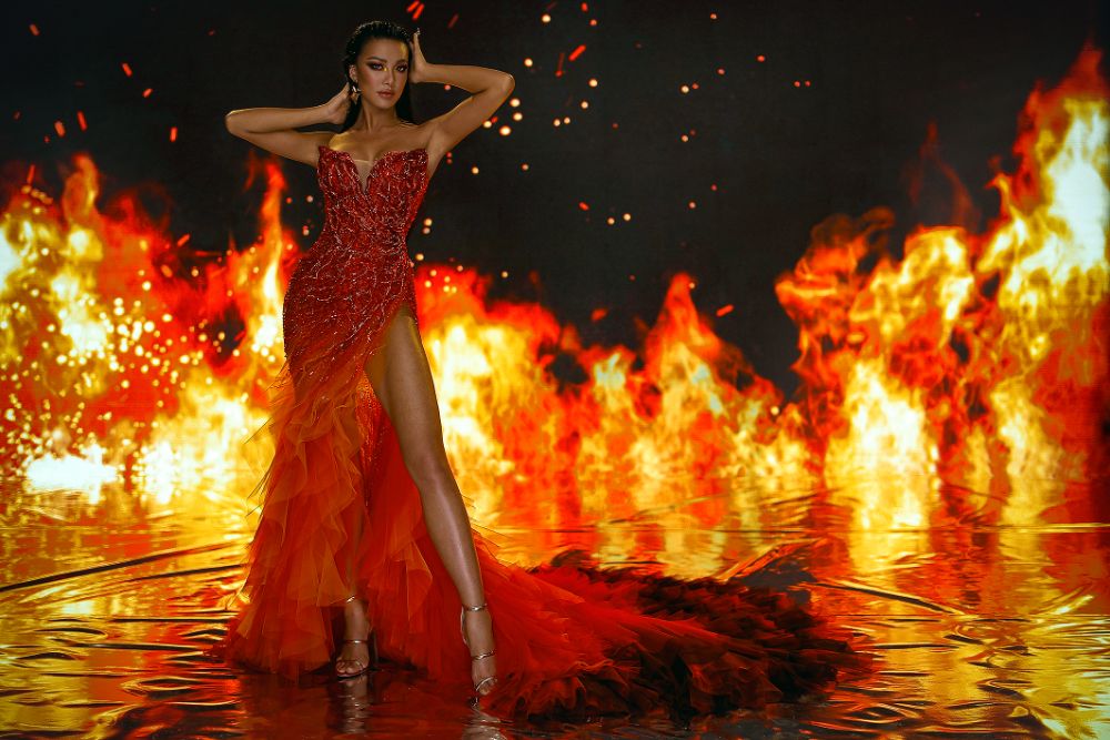 NTK Chung Thanh Phong chia sẻ: “Lấy cảm hứng từ các nguyên tố quan trọng của môi trường là lửa, rừng, không khí, tôi và ekip mong muốn có thể truyền tải thông điệp về nạn cháy rừng – một trong những thiên tai ảnh hưởng rất lớn đến không khí, môi trường và làm tổn thương lá phổi xanh của thế giới. Tôi mong muốn thông qua những bộ trang phục cùng với sự thể hiện vô cùng hoàn hảo của Kim Duyên, sẽ giúp truyền tải thêm về thông điệp bảo vệ môi trường.”