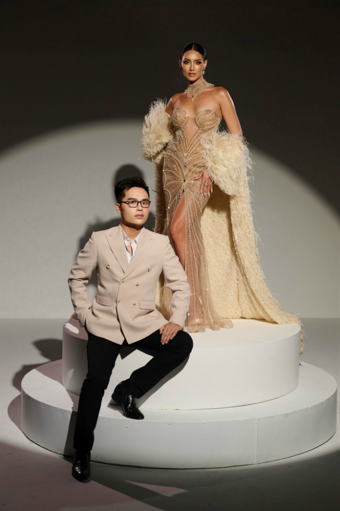 “Với phong cách Tây Âu, cá tính và thân hình quyến rũ của Lydie, Tuấn đã chọn thiết kế một bộ trang phục không quá màu mè nhưng vẫn tôn lên body và nước da của cô ấy. Không cần kết cấu 3D hay điều gì đó quá cầu kỳ, chỉ cần ôm sát vào cơ thể, đó là điều hợp với Lydie nhất”, NTK Nguyễn Minh Tuấn nói.