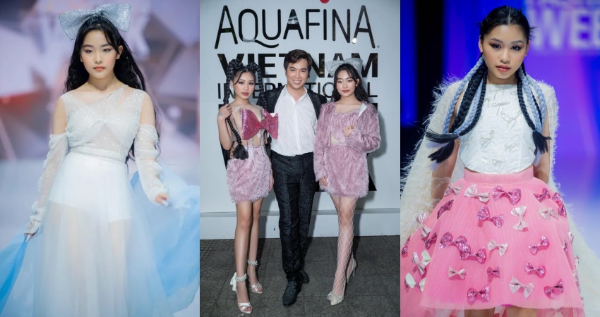Trong số khá nhiều mẫu teen diện các thiết kế của nam NTK 9X trong đêm Aquafina Vietnam International Fashion Week 2021, những bộ trang phục do người mẫu nhí Suri Phương Anh và Khánh Ngọc có lẽ để lại ấn tượng đặc biệt với người xem.