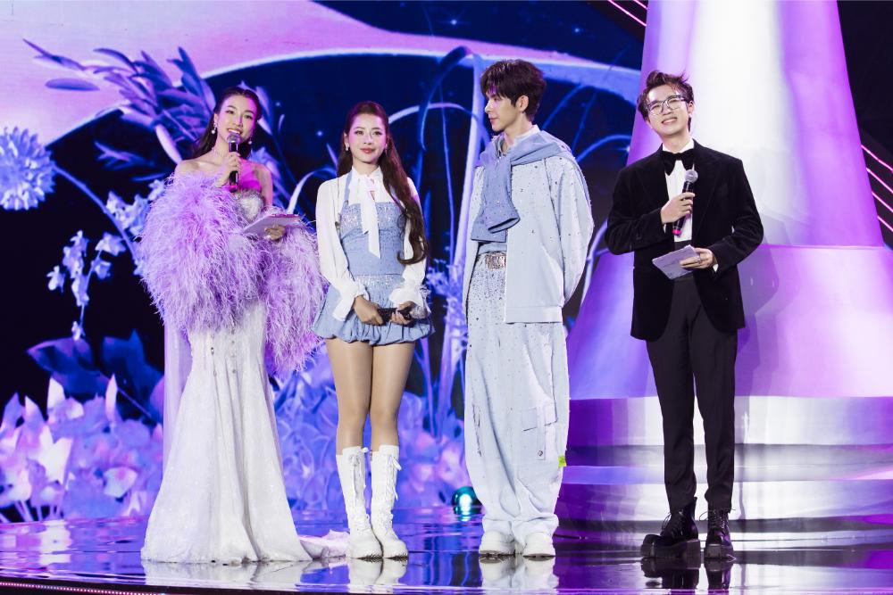 Không chỉ gây ấn tượng bằng sự tận tâm với vai trò chủ nhiệm và dẫn chương trình, Hoàng Oanh còn thu hút mọi ánh nhìn bởi phong cách thời trang tinh tế. Cô diện thiết kế váy dạ hội đuôi cá được đính kết lấp lánh, kết hợp áo choàng lông vũ màu tím – gam màu chủ đạo của cuộc thi năm nay.