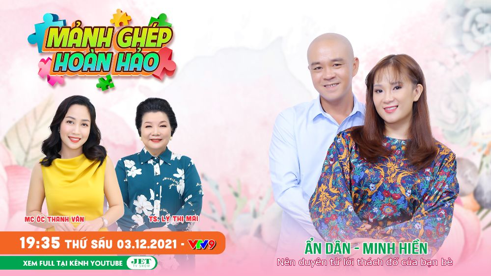 Mảnh Ghép Hoàn Hảo tập 37 với chủ đề Nên duyên từ lời thách đố của bạn bè sẽ là câu chuyện “thật như đùa” của cặp vợ chồng anh Ẩn Dân và chị Minh Hiền qua phần chia sẻ chân thực cùng MC Ốc Thanh Vân và Tiến sĩ tâm lý Lý Thị Mai. Chương trình phát sóng lúc 19h35 thứ Sáu ngày 3/12 trên VTV9.