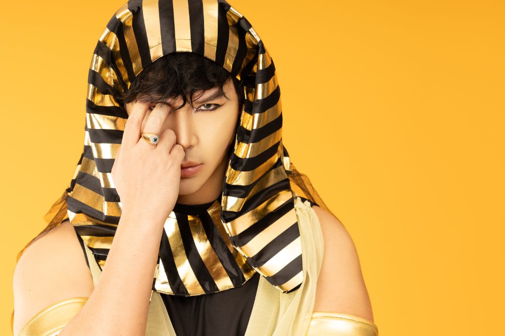 Ở tạo hình thứ nhất, Nathan Lee đã chọn hoá thân thành một “linh mục” trừ tà trong các bộ phim kinh dị với chiếc áo khoác màu đen, dài phủ kín chân. Tạo hình thứ hai là nhân vật “cảnh vệ” cực kì nổi tiếng qua series Squid Game nổi tiếng toàn cầu với chiếc áo và mặt nạ đặc trưng. Tạo hình thứ ba là Pharaoh Ai Cập đầy quyền lực, với chiếc vương miện và quyền trượng cổ xưa.