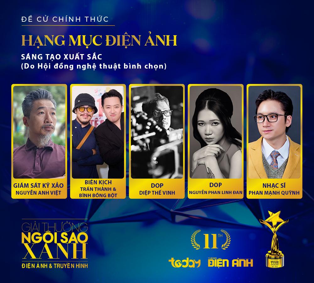 3. Sáng tạo xuất sắc (do HĐNT bình chọn): Diệp Thế Vinh (Đạo diễn hình ảnh – Phim Mai), Trấn Thành & Bình Bồng Bột (Biên kịch – Phim Mai), Nguyễn Anh Việt (Giám sát kỹ xảo – Phim Người mặt trời), Nguyễn Phan Linh Đan (D.O.P – Phim Cô dâu hào môn), Phan Mạnh Quỳnh (Âm nhạc – Phim Ngày xưa có một chuyện tình).