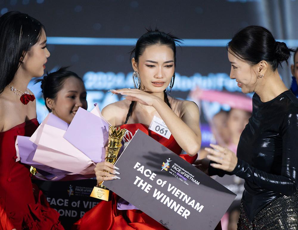 Thu Phương bật khóc lớn khi được gọi tên ở vị trí cao nhất.