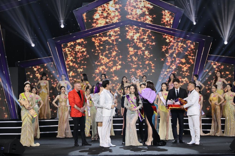 Khoảnh khắc đăng quang của Tân Hoa hậu, Á hậu bên cạnh Chủ tịch Đặng Gia Bena, Danh ca Ngọc Sơn, Ca sĩ Thanh Thảo và Ca sĩ Kyo York