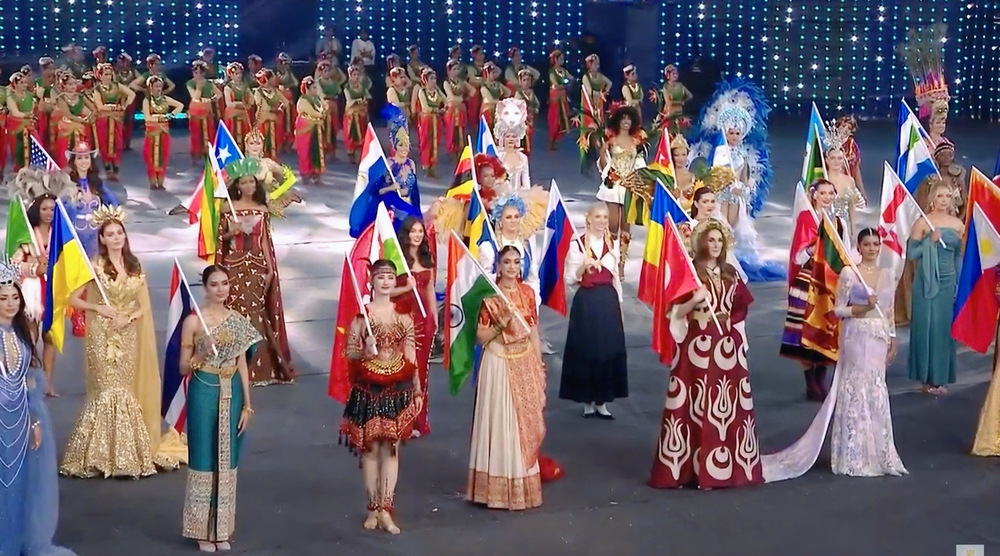 Đêm khai mạc ngập tràn sắc màu lễ hội với phần trình diễn các điệu múa truyền thống, tôn vinh di sản văn hóa của vùng Telangana, nơi đăng cai Miss World lần thứ 72.