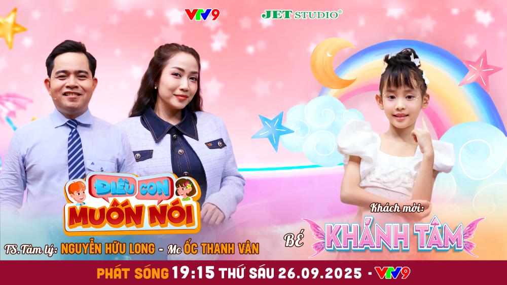 Điều Con Muốn Nói tập 12 với những tâm sự của bé Khánh Tâm sẽ được phát sóng vào lúc 19h15 thứ Sáu 26/9/2025 trên VTV9. Chương trình Điều Con Muốn Nói do VTV9 phối hợp Jet Studio thực hiện.