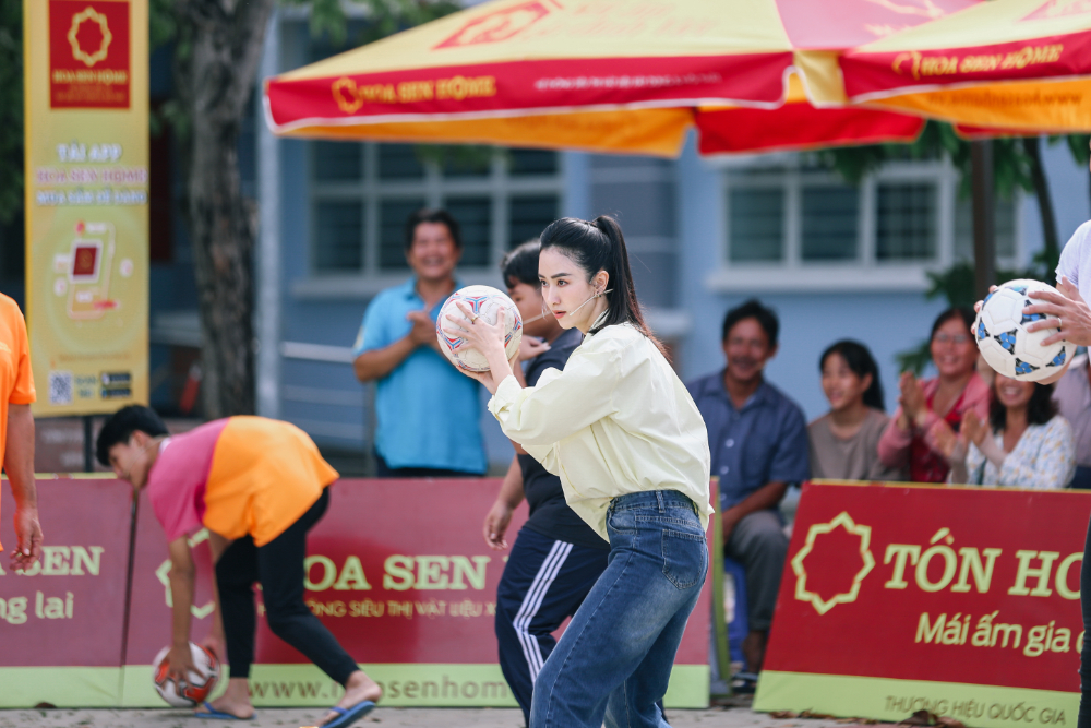 Á hậu Hà Thu đã kết hợp ăn ý với thủ môn Tấn Trường để hoàn thành nhiệm vụ tại chương trình Mái ấm gia đình Việt, giúp 3 hoàn cảnh khó khăn mang về tổng giải thưởng trị giá tới 127 triệu đồng.