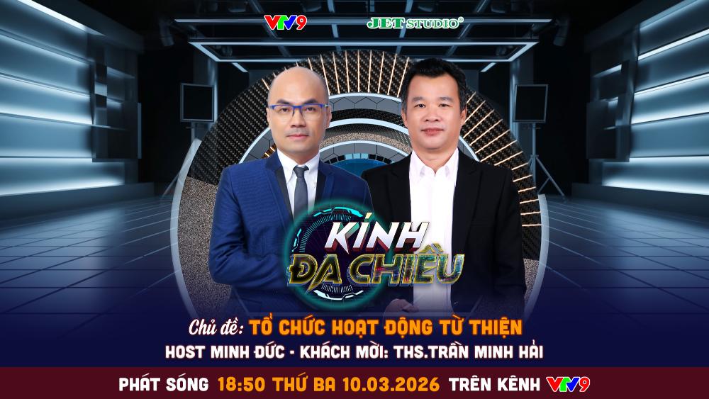 Chương trình Kính Đa Chiều với chủ đề Tổ chức hoạt động từ thiện cùng sự tham gia của MC Minh Đức và Thạc sĩ Trần Minh Hải sẽ phát sóng lúc 18h50 ngày 10/3/2026 trên VTV9. Chương trình do VTV9 phối hợp Jet Studio thực hiện.