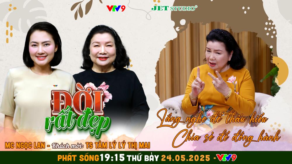 Tập 18 chương trình Đời Rất Đẹp với tiến sĩ tâm lý Lý Thị Mai sẽ được phát sóng vào lúc 19h15, thứ Bảy, ngày 24/5/2025 trên kênh VTV9. Chương trình do VTV9 và Jet Studio phối hợp thực hiện.