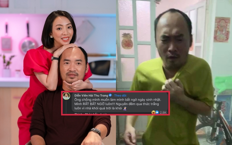 Dòng chia sẻ của nam diễn viên lập tức thu hút nhiều sự chú ý từ cộng đồng mạng, ai cũng phải “lắc đầu” vì bất ngờ Tiến Luật tặng vợ trong ngày sinh nhật. Chính Thu Trang cũng hài hước để lại bình luận: “Ông chồng mình muốn làm mình bất ngờ ngày sinh nhật. Mình rất bất ngờ luôn! Nguyên đêm qua thức trắng luôn vì nhà khói quá trời là khói”.